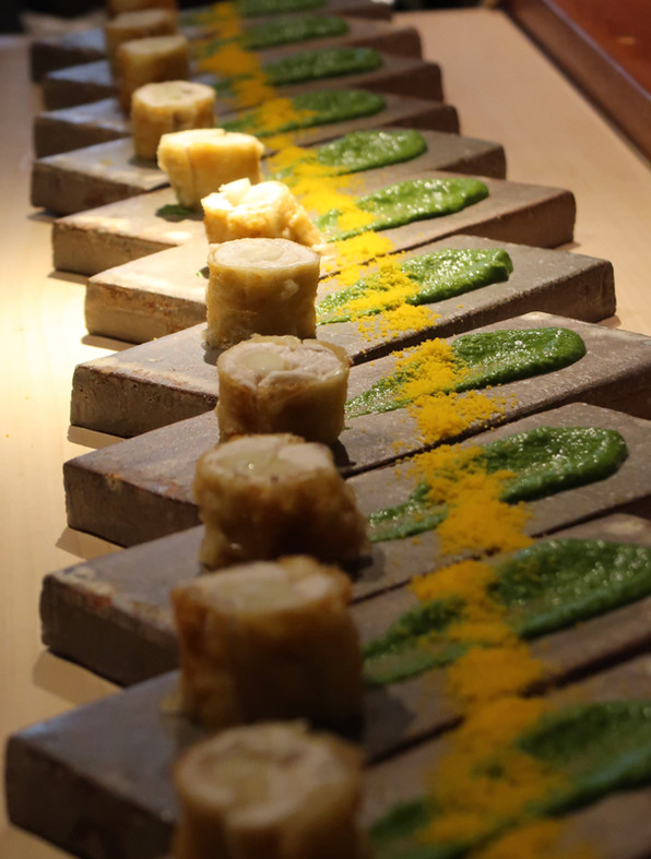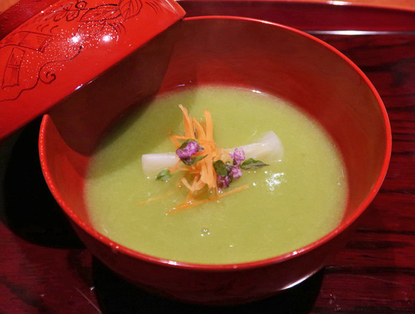●極太のアスパラガスに、極薄に削ったかつお節をまぶしつけたもの。