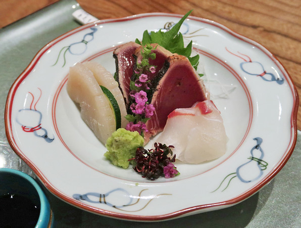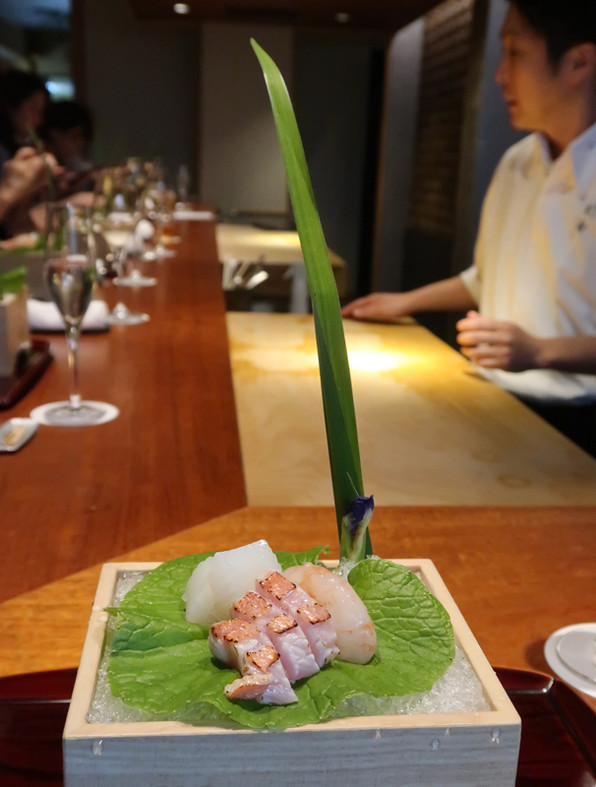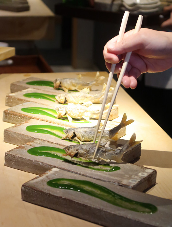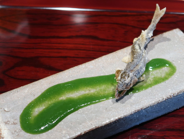 ●明石の鯛には、ふきのとう醤油と沖縄の塩「ぬちまーす」が添えられました。