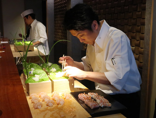 厳選の食材を使って、フランス料理の技法とプレゼンを和食に取り入れて作られたコース料理はダイナミックで華麗、