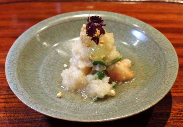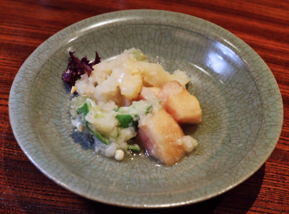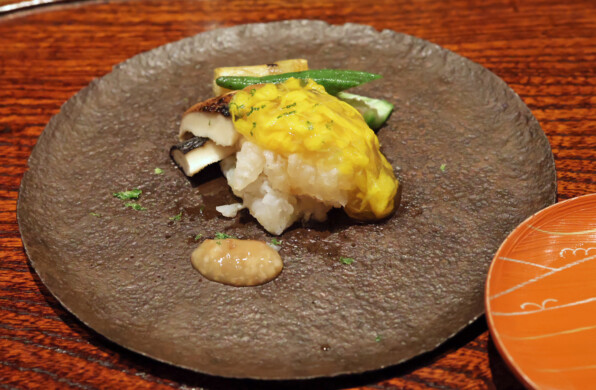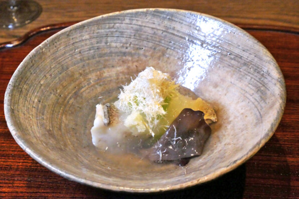 秋の鱧を、水晶鱧でいただき、すばらしい食感にいきなり感じ入ります😭