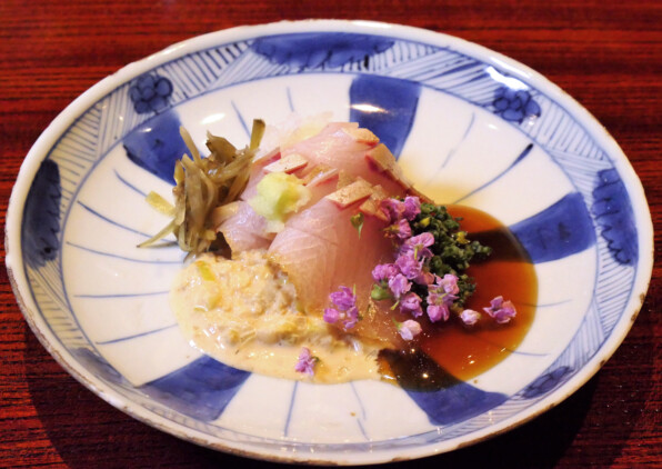 佐賀の「東一(あずまいち)」を食前酒にひと口いただきお料理スタートです。