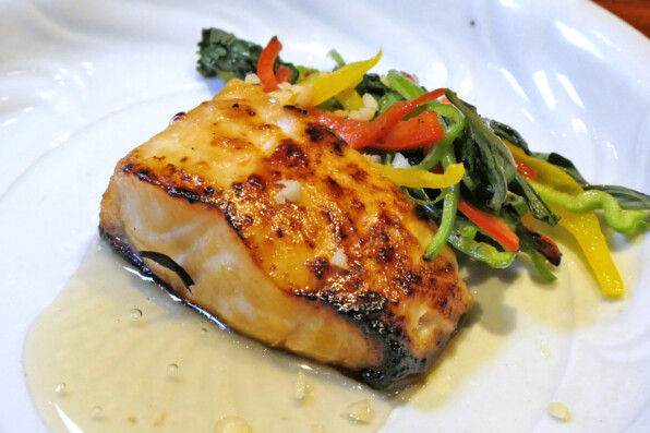 魚の上にのっているのは、にらの花。可憐でかわいい😭
