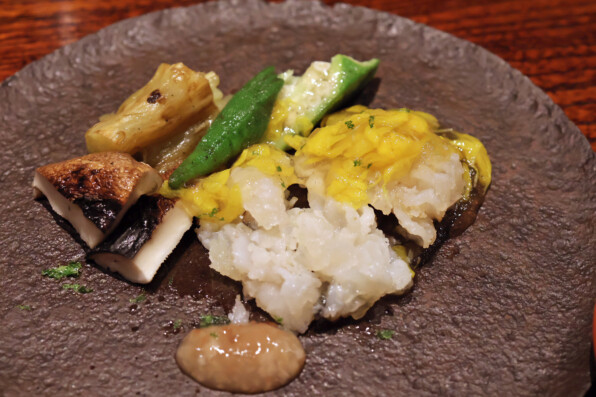 焼き原木椎茸、焼き茄子、焼きおくら。