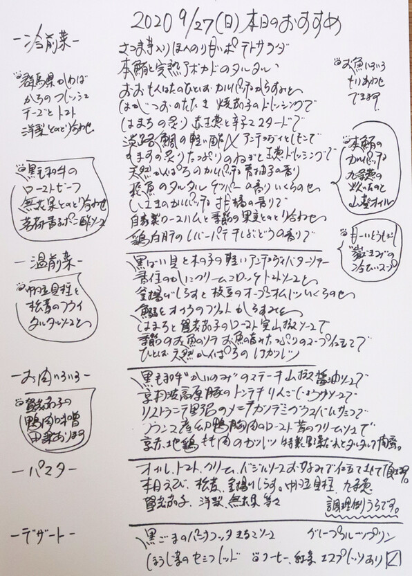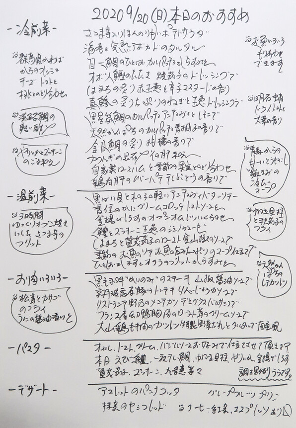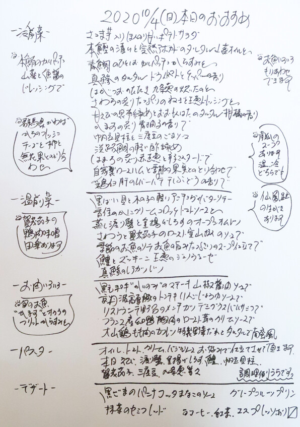 ●毎日日替わり手書きメニュー。どんどん品数増えてすごいなあと思っています。