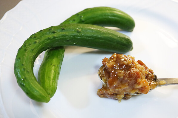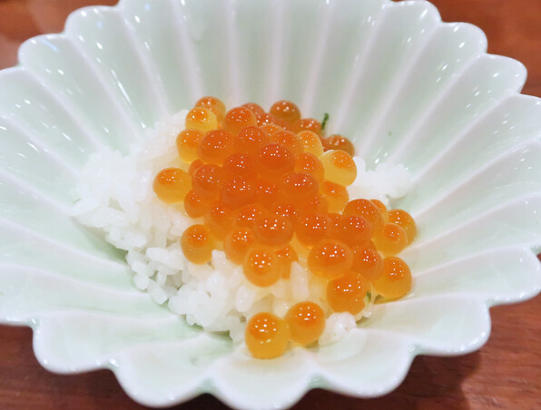 ●13日、蟹にいくら。下にいちじく、デに切った水茄子。