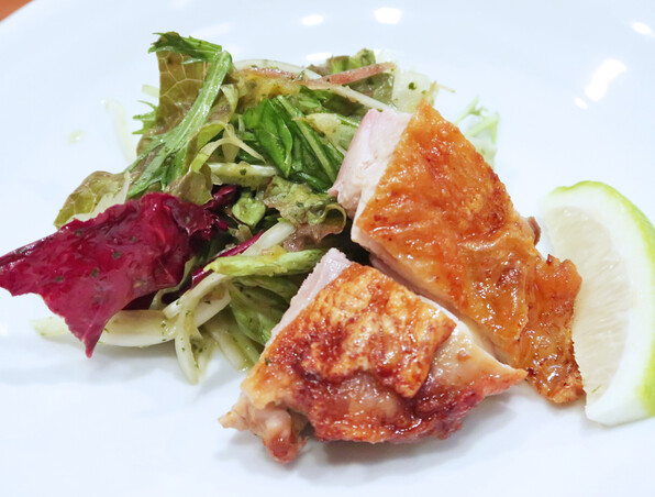 ●大山鶏もも肉しっとりハム、りんごとアンディーヴのサラダ。