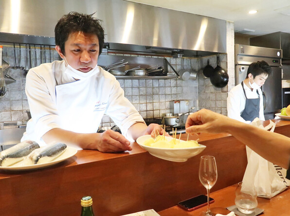 ●のりき=スーシェフ井上典樹が作るのりキッシュ(^o^) キッシュロレーヌ、上にほうれん草。