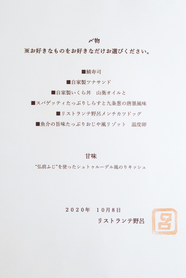 「リストランテ 野呂」10月25日(日)20時30分~、訪問213回目。