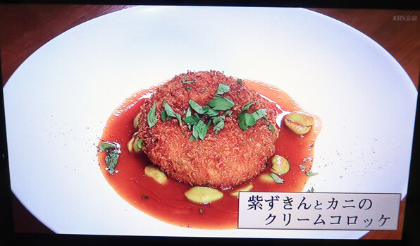 ●この日放送のKBS京都の「あぐり京都」で取材されたのろっち=店主の野呂和美さん、放送の中で紫ずきんの蟹クリームコロッケと丹波くりのリゾットを披露していたので、それをやっていただこうではないの\(^o^)/\(^o^)/