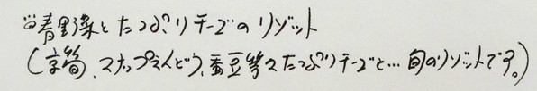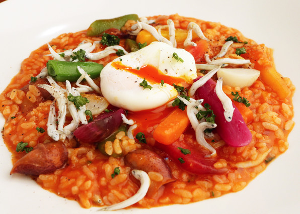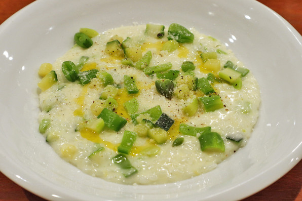 ●リゾットは春野菜とたっぷりチーズのリゾット。