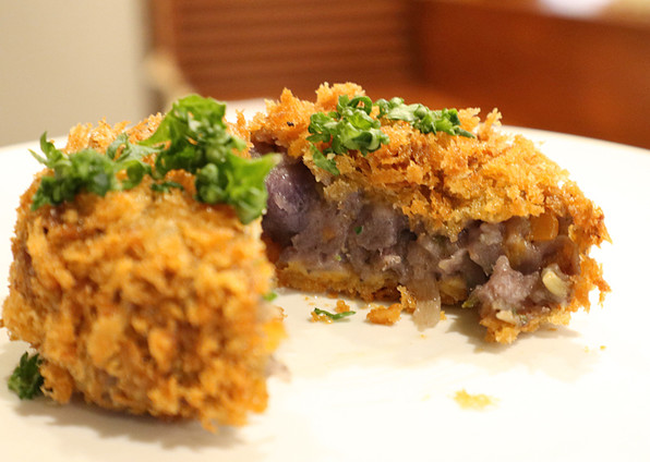 ●コロッケは「マルシェノグチ」さんからの紫芋を使ったということ。これもものすごくおいしい。