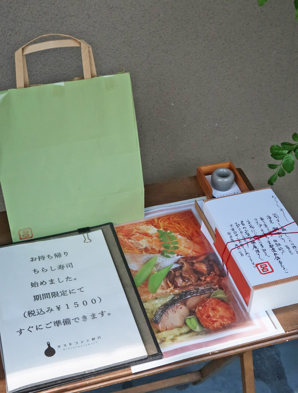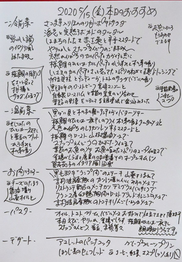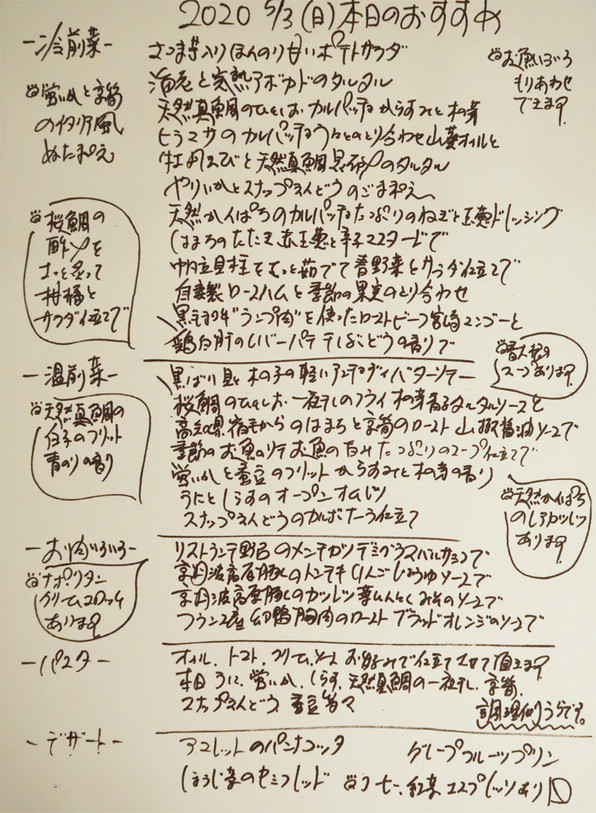 ●シェフの森博史さん、青いマスク姿で仕事されていました。テーブルに予約の料理いっぱい、次々お客さまが入っていらして、人気のほどが改めてわかりました。