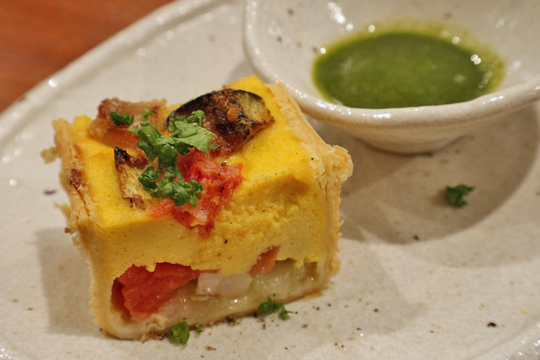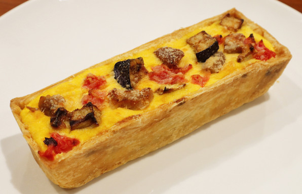 ●キッシュ 賀茂茄子、トマト、ロースハム、バジルのソースと。非常に美味。