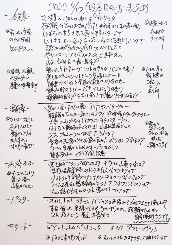 いつもの日曜のりすのろ、6月7日(日)「リストランテ 野呂」、すでに以前と同様、20時半でなければ入れなくなっています。