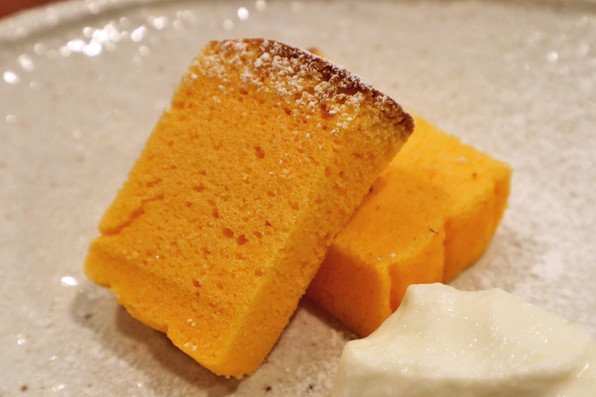 ●「濃紅たまご」を使って作ったカステラというか、しゅわっと溶ける食感がすてきな焼き菓子。