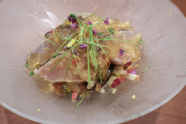 ●これ以降の4皿は、普段のメニューに載っていない、この日のためにこの日の食材で作られたイレギュラーなものですが、所望されるお客さまには、予約時お伝えいただければ喜んでお作りいたしますということでした。