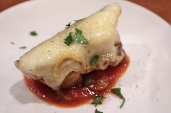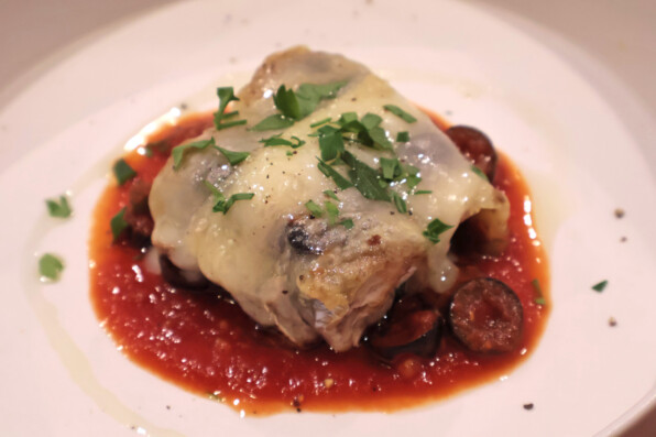 ●さわらの炙り、トラパネーゼソースに続いて、3皿目もたくちゃん、青山拓史さん作でした。