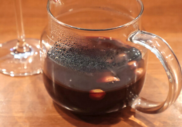 皮をむいて、イタリアの甘いデザートワインをひたひたとかけて出してくれました。