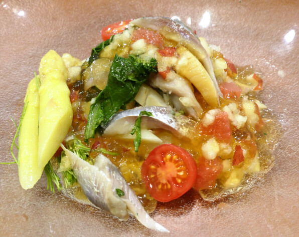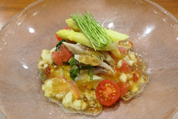 ●カウンターに満席12名で入れてもらい、すべてひんやり冷製、あるいはできたて熱々、揚げたてパリパリ状態を皆さんに召し上がっていただきました。