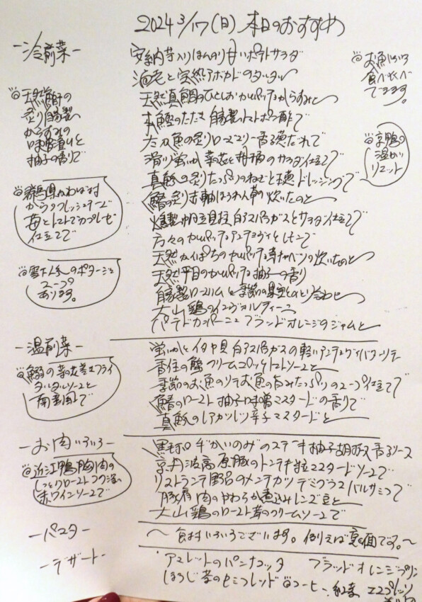 ●ほぼすべて、先日あらかじめ試食させてもらったお料理です。