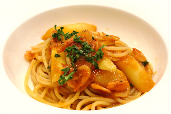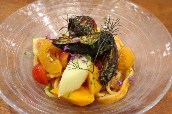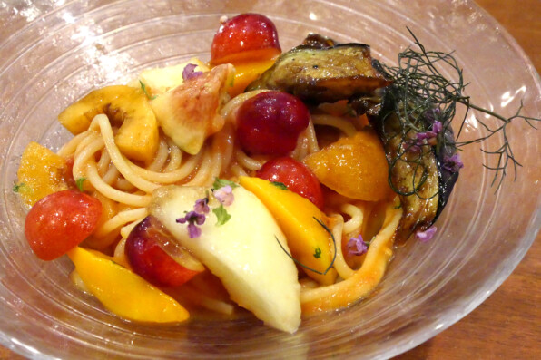 ●これも大好評でした、冷たいフルーツのスパゲッティ。さわやーか、フルーツの甘みとトマトソースが絶妙に調和して、うっまいですー☆☆☆