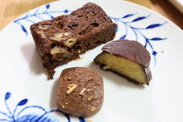 ●やたらショコラ菓子が多いのがわたし向きで、そして、本当においしいのです。これはくるみ入り、濃厚ショコラ味のパウンドケーキです。ラム酒が馥郁と香ってしっとり夢のような口当たりでした。
