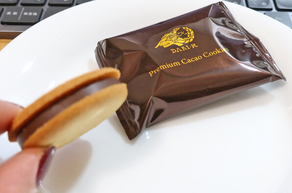●カカオサンドクッキーです。ダークとミルクとありますが、ダークがよかった\(^o^)/さくさくサブレにショコラがはさんであって、ほぐほぐと2口くらいでいただけます。2枚3枚と進みます(^o^)