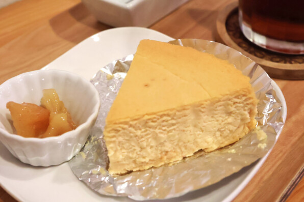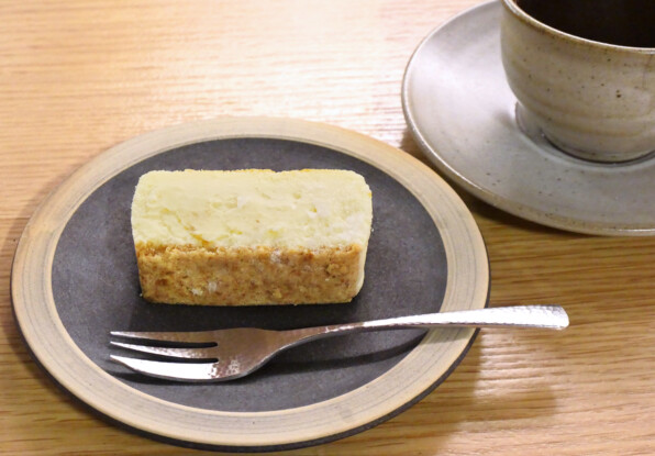 深煎りブレンドのコーヒーと共にチーズケーキです。