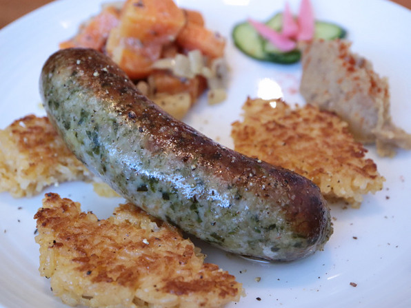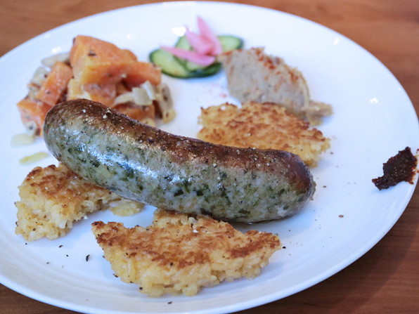 ●こちらで必食のラオスソーセージのプレート、1400円。これは土日のみのブランチメニューです。