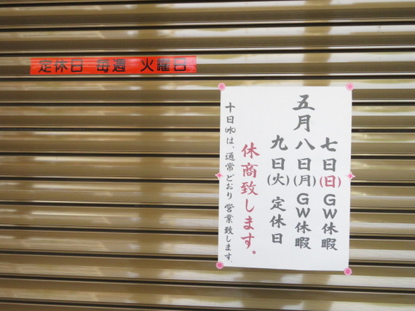 ●帰りは当然「出町ふたば」さんに寄って帰ろうとしたのですが、ご覧の通りでした~( ̄○ ̄;)( ̄○ ̄;) でもちゃんと休んでください、お休みは大切です。時々お休みがあると、がらりと気分が変わって、元気になって、またやる気が出ます\(^o^)/\(^o^)/