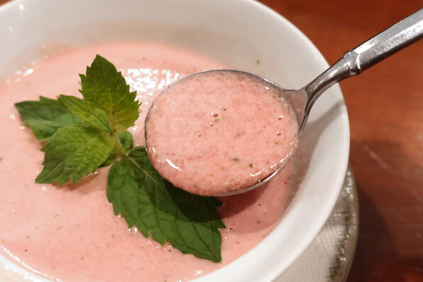 甘みのあるメロンスープと白ワイン、絶妙に合いました。