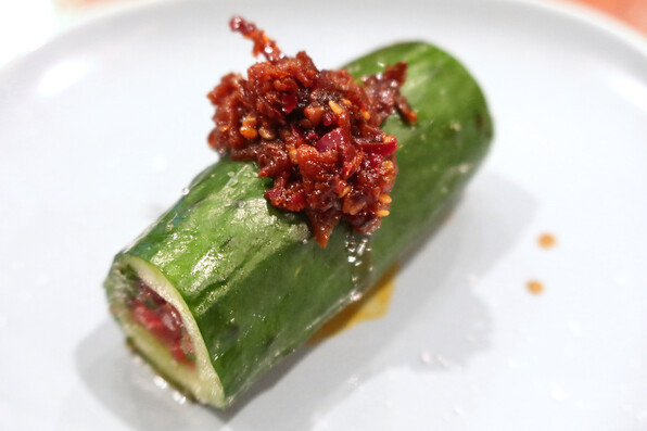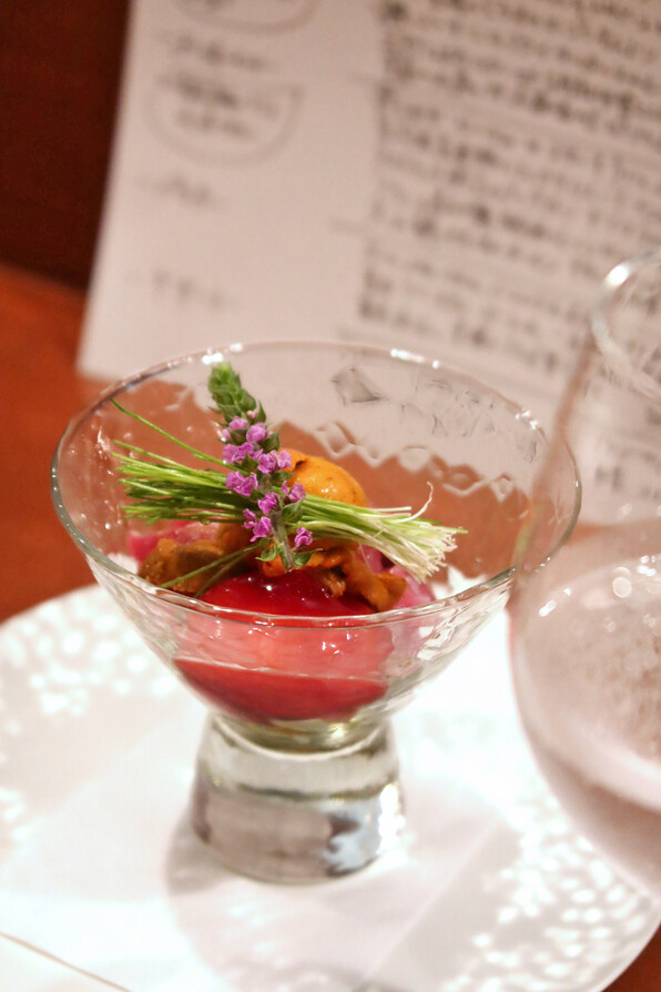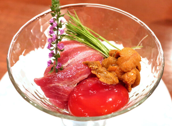●マンゴー、京トマト、帆立燻製、こはだ、かますという組み合わせでした。