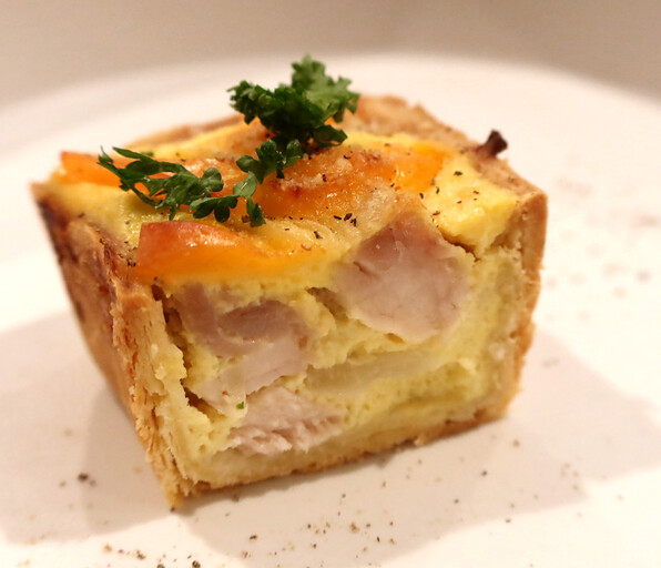 ●のりキッシュ(ゴルゴンゾーラ、自家製ロースハム、スナップえんどう)
