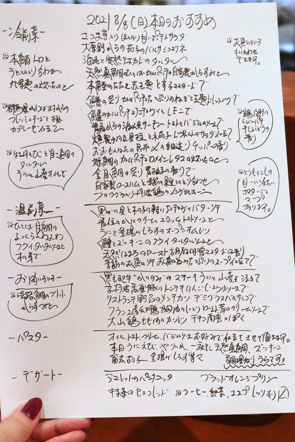 肉や魚のメイン料理ではなく、オムレツで雲丹としらすの香味を楽しみました。