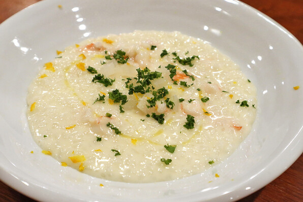 ●青森の帆立を、生と炙りとひも。ひもはケイパーとガルムの風味