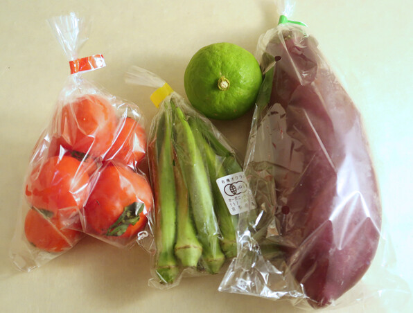 ●このきゅうりも好きで、ベビーベビーきゅうり とも言える小さいのも入っています。ベビーきゅうりならではの風味とかみずみずしさというのがあり、何もつけずにそのまま香りを楽しみます。