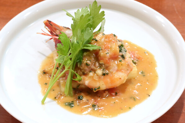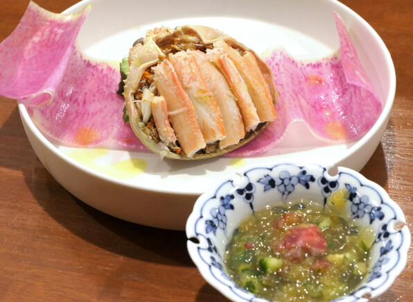 ●こっぺ蟹の殻に詰めて丸ごと揚げた、こっぺ蟹の身と卵みっちりのクリームコロッケ。