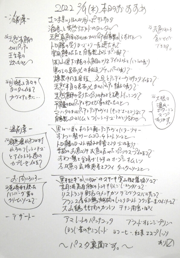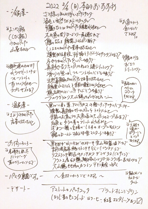 「リストランテ 野呂」3月22日(火)訪問 278回目。マンボー明けです。