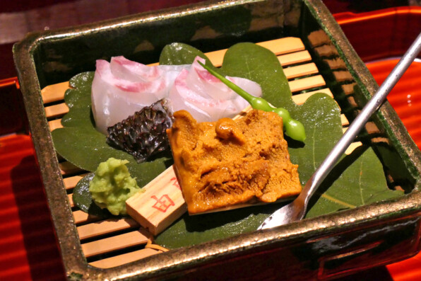 ●鯛と雲丹。雲丹は由良の萩原丸ブランド。