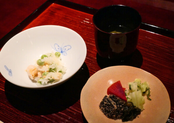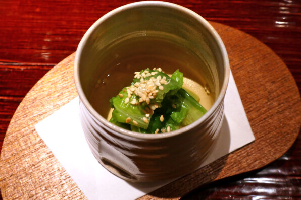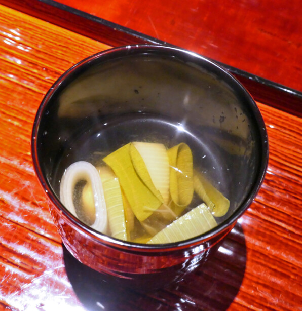 ●止椀は味噌汁ではなく、九条ねぎスープでした。最大限に甘い九条ねぎでした。