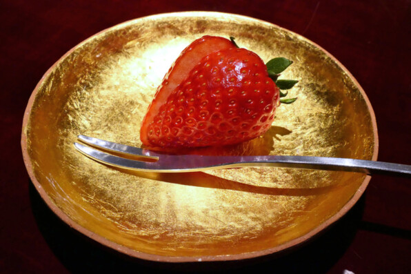 ●こぶしくらいの大きさのいちごが、黄金のお皿で供されました。