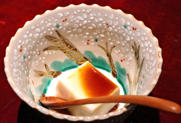 胡麻豆腐に和三盆で作った黒蜜をかけて供されました。