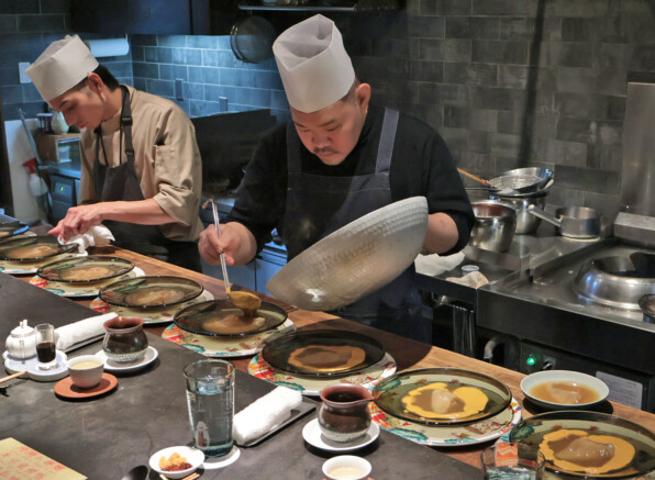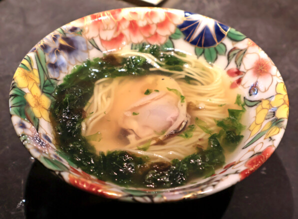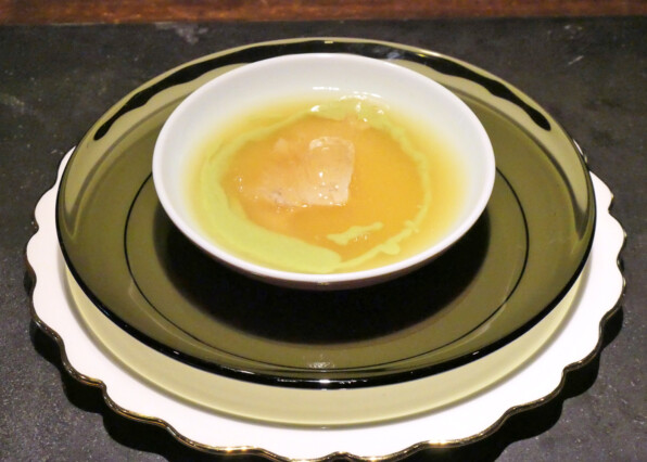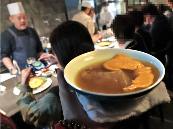 すっぽんの旨味を吸った鮑という贅沢なお料理。
