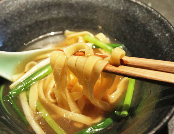 ●麺も自家製麺とのこと。塩もかんすいも使わないと。小麦粉と卵と水だけで作られているそうです。