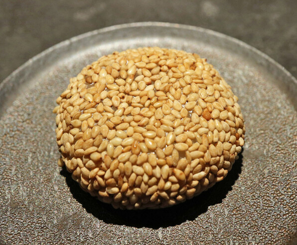 ●胡麻だんご、揚げたてをいただきました。中のあんが濃厚でとても好み・・・ちょっと極端なほど好み・・・尋ねてみたら、少しショコラ入りということでした。納得。