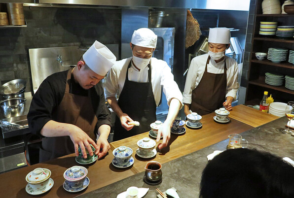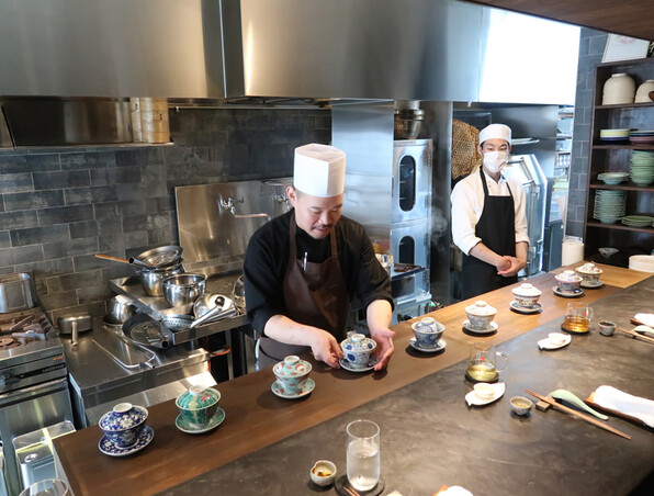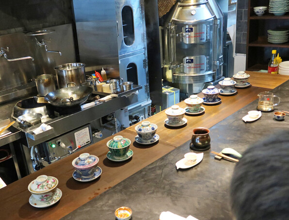 ●器がきれいだから見せていただきました。研究熱心な上岡誠さん、ホテル勤め時代は年に2回は中国に行ってあちこち巡り、持てるだけお買い物して来られたのだそうです。「今は行けない、、」って。ほんと。みんな行きたいところに自由に行けない日々。でもこんなおいしいものをいただけるのだから十分幸せです\(^o^)/\(^o^)/