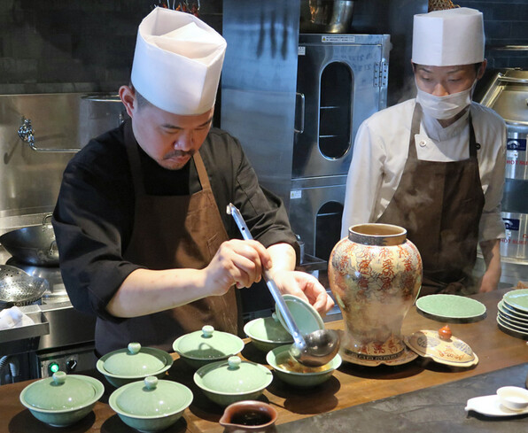 ●上湯スープに、大徳寺納豆を細かく砕いたものを入れて、風味あるスープになっています。