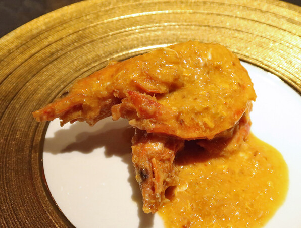 ●ひと皿めは、花彫=紹興酒漬けにした車海老。酔っぱらい海老とある通り、紹興酒の風味が染み込んでうんまいの\(^o^)/\(^o^)/