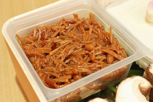 ●さらにこれ\(^o^)/\(^o^)/ご飯の共に大人気の、これだけでも「二条 やま岸」さんの独立したベストセラー商品のえのきの粘り煮。これを組み込んでくださったのは意表を突かれたというか望外の喜びというかまさかというか、これを牛肉に合わせる手があったのねと目からうろこ500枚という感じでテンションが上ったパーツでした(^o^)/☆☆☆