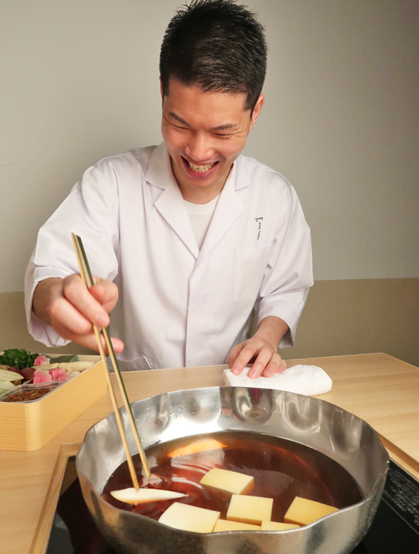 ●このお鍋を実現してくれた、料理長の横井裕史さんがお手本を示してくれます。